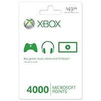 This is a great denomination to release Microsoft points in. Since most games on Xbox Live Arcade are purchased in 400 point ($5) increments this card give you the ability to download ten 400 point games or five 800 point games or some other combination (you get the idea). $50 is also a much more acceptable amount than the $62.50 for 5000 points. Since this is on a card it makes this possible to give as a gift or buy without using a credit card. This would be a worthwhile purchase for anyone with an Xbox 360 and Xbox Live.Find helpful customer reviews and review ratings for Xbox 360 LIVE 4000 Points