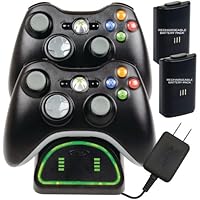 Comes with everything you need to make wireless controllers into re-chargable wireless controllers. I was tired of going through so many batteries. This works great and was less expensive than many other chargers and this one came with the batteries to charge! Highly reccomended.Honest reviews on Xbox 360 - Charging Station